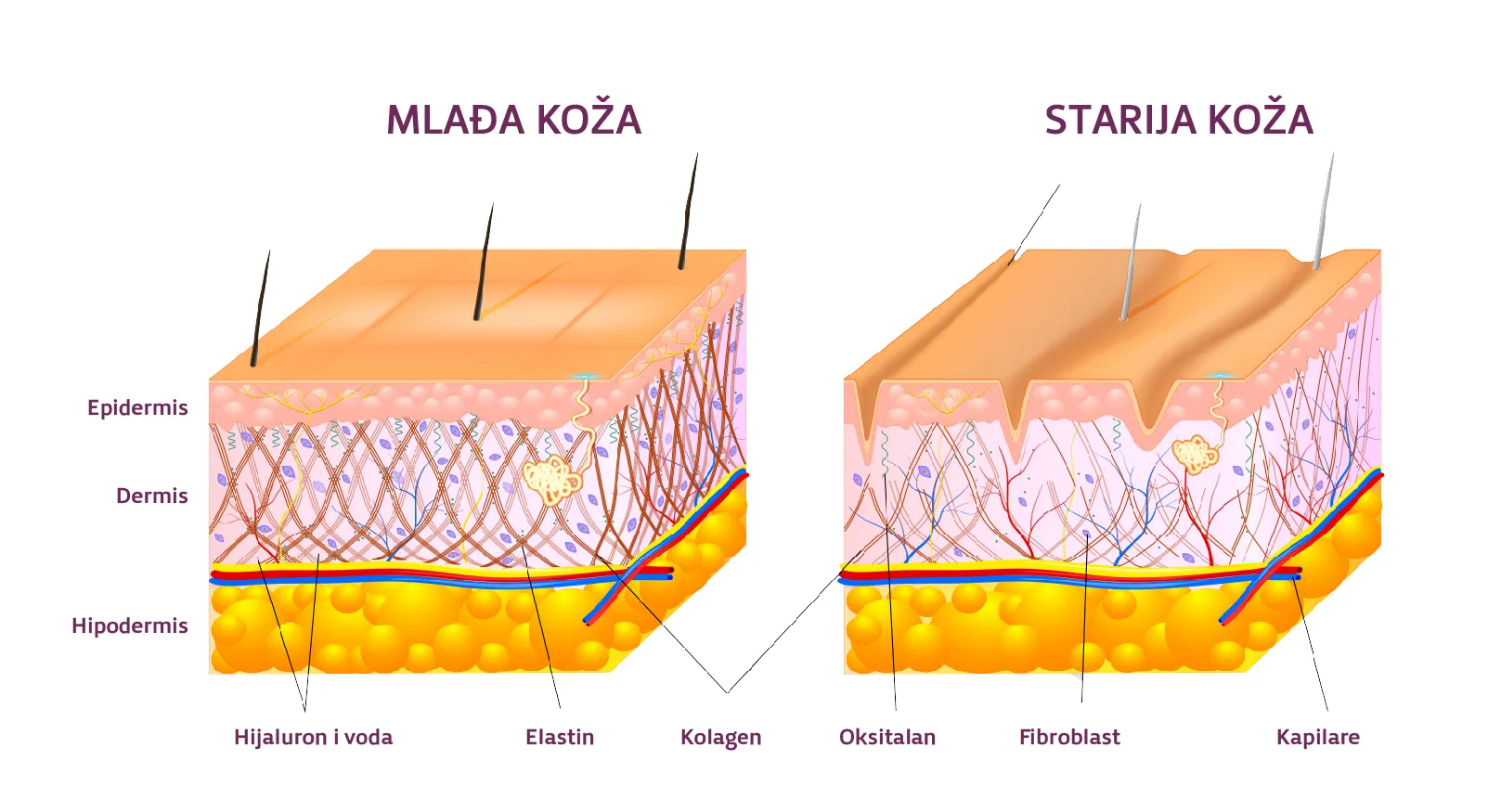 S godinama tijelo smanjuje proizvodnju kolagena, što rezultira pojavom bora, opuštanjem kože i gubitkom sjaja. Nakon 25.godine, gubimo otprilike 1% kolagena godišnje- a vanjski faktori poput UV zračenja, stresa, pušenja i loše ishrane taj proces dodatno ubrazavaju.